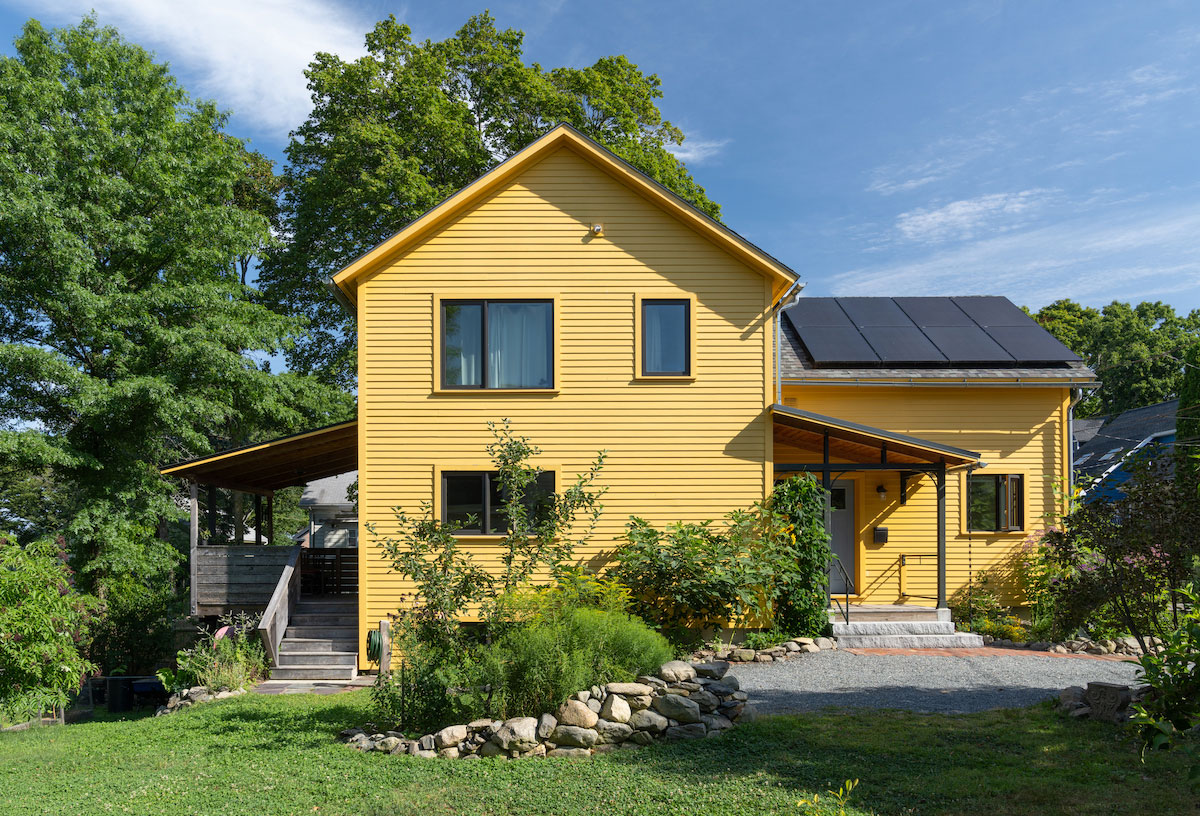 Design for this renovation and rehab of an early 1900’s worker’s cottage retains the home’s historic quality and prioritizes responsible energy and resource use. New covered porches connect the interior spaces to the landscape, which is being cultivated into gardens and permaculture habitat. The home’s shell is highly insulated and sealed for controlled air exchange and is heated using a high-efficiency, heat pump system.